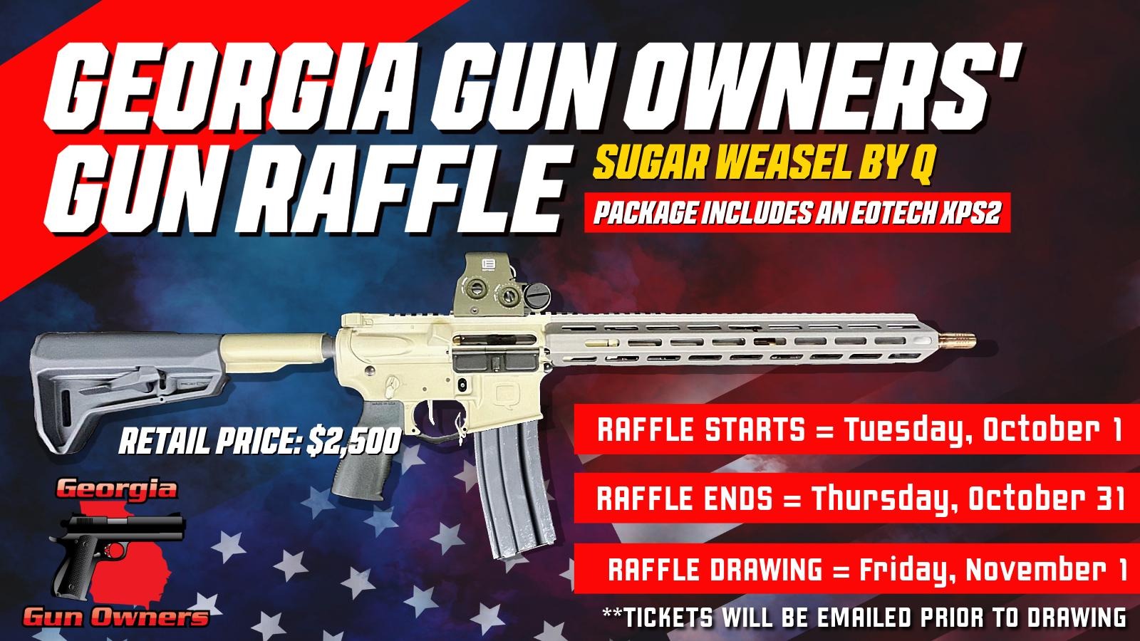 Buy your raffle tickets NOW and be entered to win this Sugar Weasel by Q and an EOTECH XPS2!